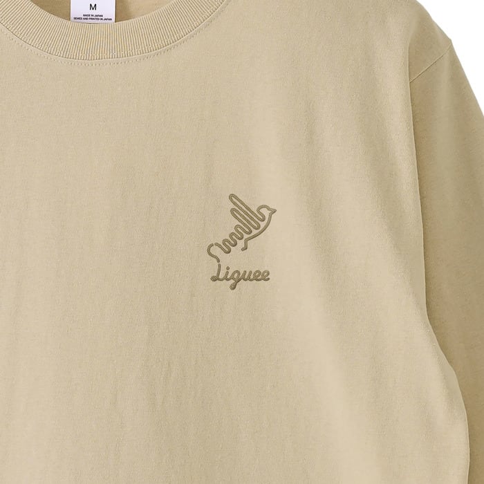 フロントの胸元には繊細な刺繍ロゴを、背中には羽ばたく鳥のモチーフを大胆にプリント。